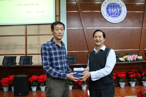 讲座结束后,王子华向王立新教授赠送了我校建校六十周年纪念品。