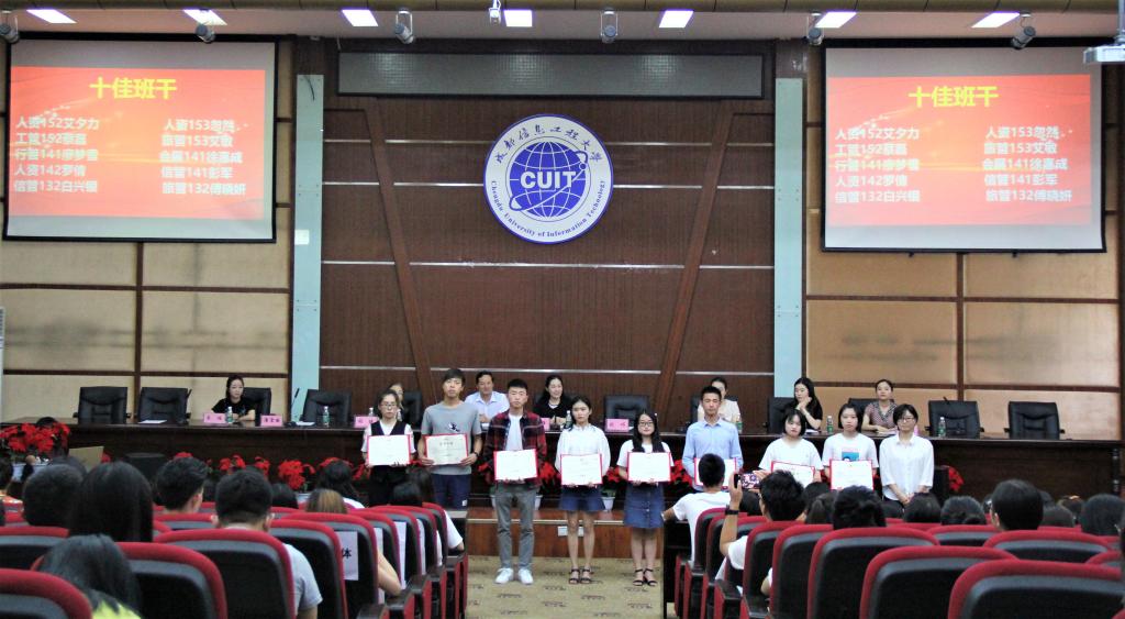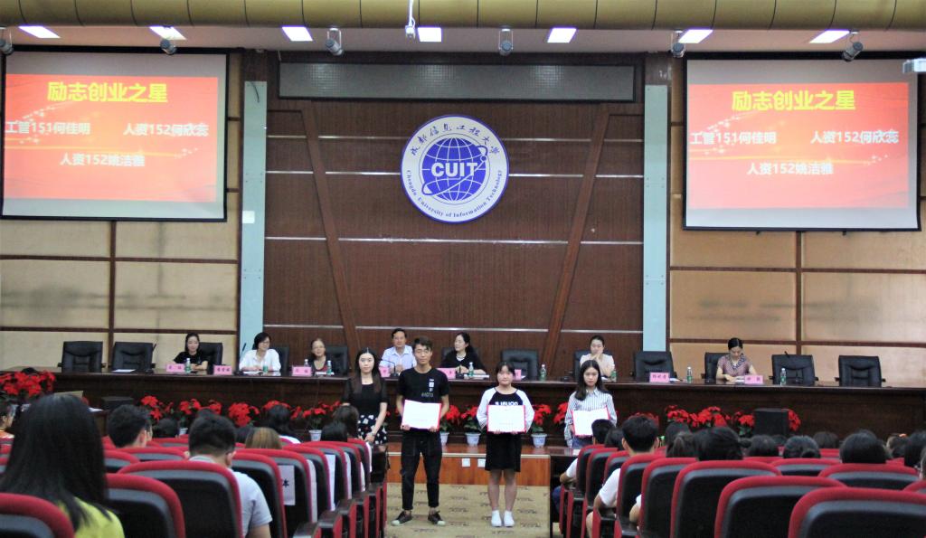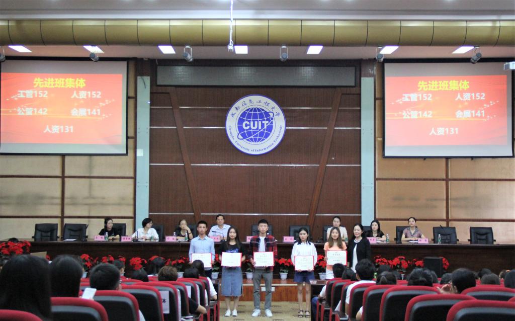 大会开始,主持人介绍到场来宾。在全体师生起立奏唱国歌后,学院党总支书记王子华宣读表彰决定,开始颁奖,在座颁奖嘉宾依次为学习之星、志愿者之星、文体之星、十佳班干、励志创业之星、学科竞赛之星以及十佳青年、先进班集体等奖项获得者或团体颁发奖状。随后,管理之星获奖学生代表冉钧恺发言,他表明作为青年的我们应该励志向上、不断充实提高自己,鼓励学弟学妹们认真学习、抓住未来道路上的机遇发展自我。