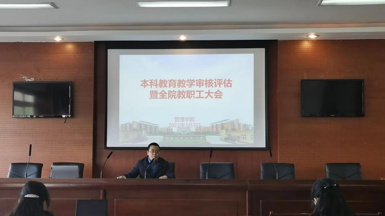 3月3日下午,学院在龙泉校区第二会议室L1213组织召开学院本科教育教学审核评估暨全院教职工大会,会议由学院党委书记刘敦虎主持,学院领导班子及全院教职工参加了会议