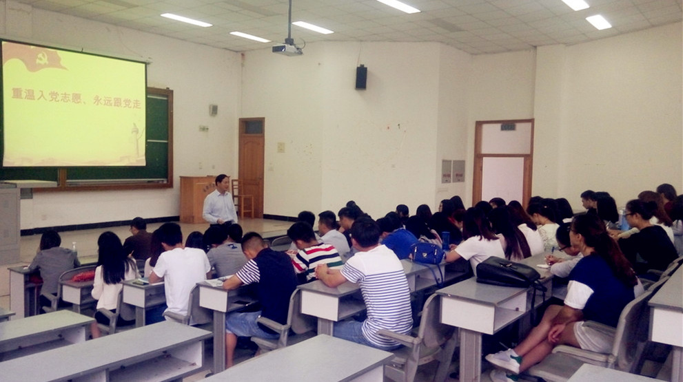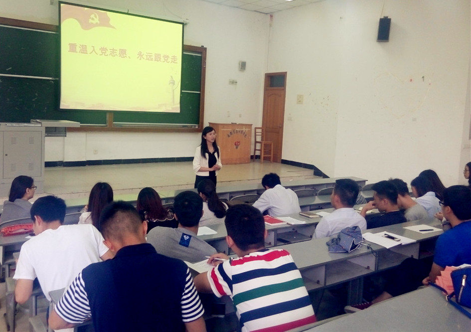 5月4日,英国威廉希尔公司在L4101教室开展“重温入党志愿、永远跟党走”主题党日活动,全面启动“‘两学一做”学习教育工作。学院党总支书记王子华、院长黄萍带头讲述入党初衷、谈人生理想与工作追求。学院教师党员及全体学生党员参加了此次活动。