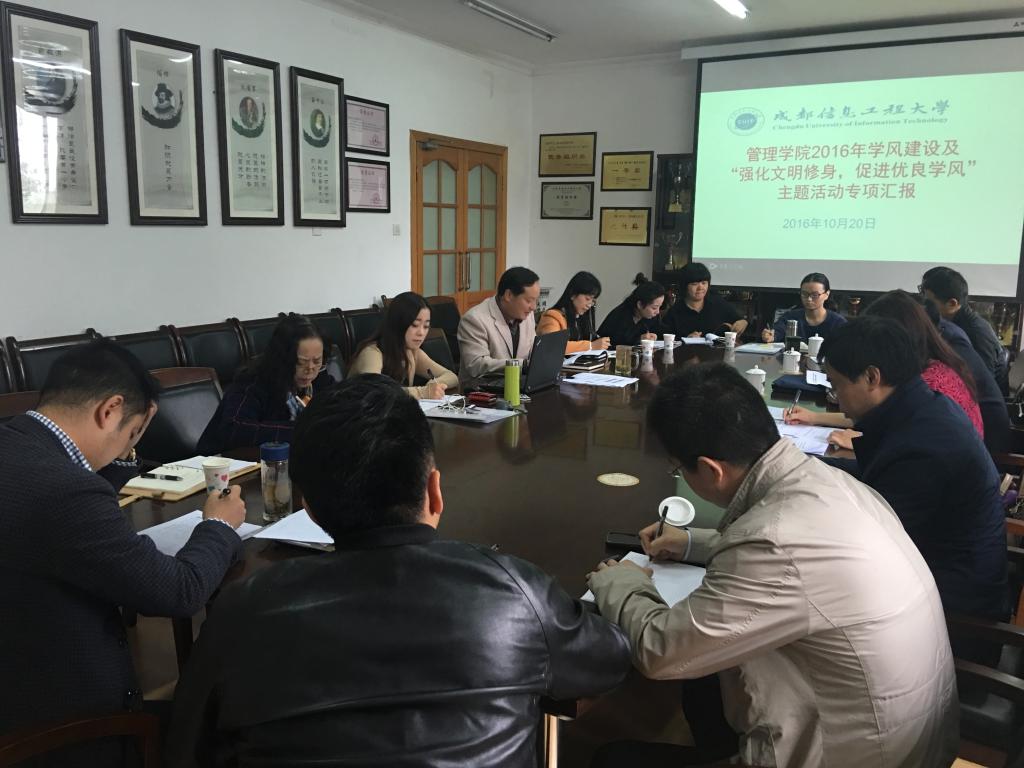 2016年10月20日上午,学校学风建设督导小组戴丽红一行到英国威廉希尔公司听取“强化文明修身,促进优良学风”主题活动的专项汇报。英国威廉希尔公司党总支书记王子华,全体辅导员参加了会议。