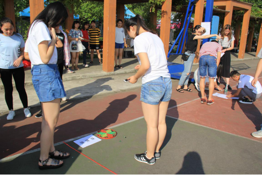 本次活动主要采用游戏的方式,同学们通过玩游戏赢积分兑换奖品。游戏主要分为个人大闯关、团队大作战和自由组合战三个部分。在个人闯关环节,同学们通过放纸飞机、弹弹珠、翻纸牌等游戏为个人而战,考验了同学们的耐心和毅力,开拓了同学们的思维。在团队战中,同学们组成队伍,参与衔水一战、背夹气球、七手八脚等游戏,体会到了团队协作的乐趣,拉近了同学之间的距离。在自由组合战中,同学们自由组成组合参与游戏,有盲人作画的轻松,有指压板你划我猜的默契考验,也有快问快答心理知识的激动。尽管天气炎热,但是却丝毫没有影响同学们的兴趣,尤其是大一和大二的同学,其中人资,会展,劳保,信管,工管,旅馆专业的同学们参与度极高,在个人赛,团体赛,组合赛中都有他们的身影,活动持续了两个半小时,大家乐此不疲,一起度过了一段意犹未尽的时光。