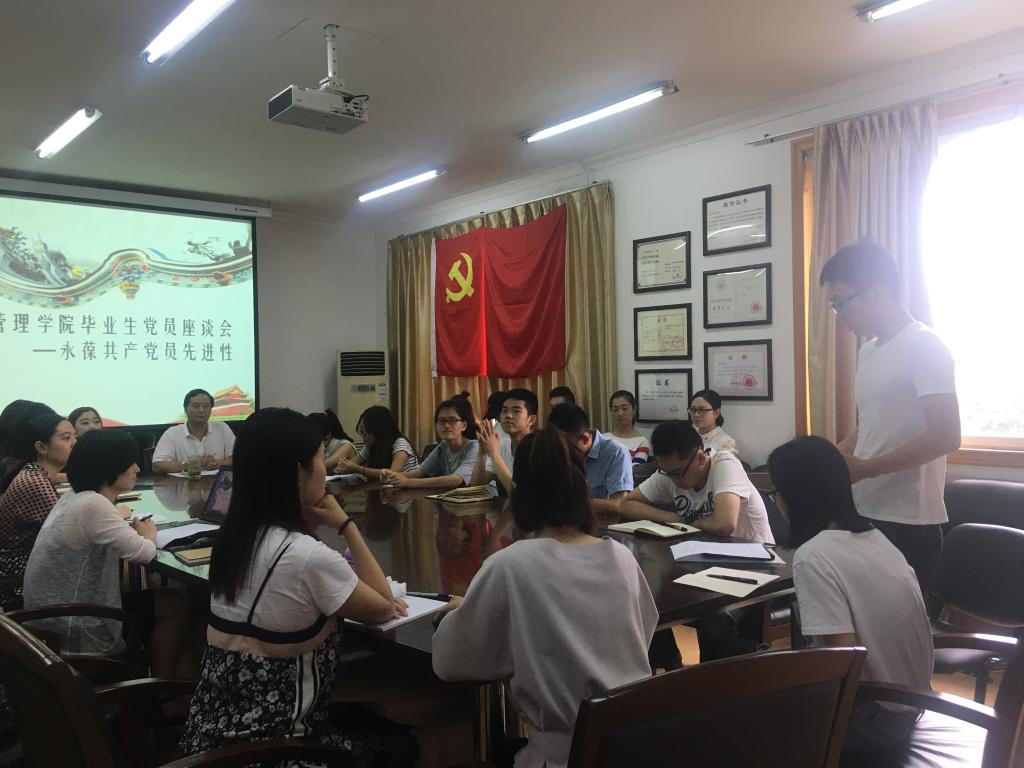 2017年6月23日上午10点,英国威廉希尔公司党支部在第二行政楼会议室召开了以“永葆共产党员先进性”为主题的毕业生党员座谈会,本次会议由学生二支部书记、辅导员潘雪丽主持,党总支书记王子华、全体辅导员及2017届毕业生党员参加了此次座谈会。