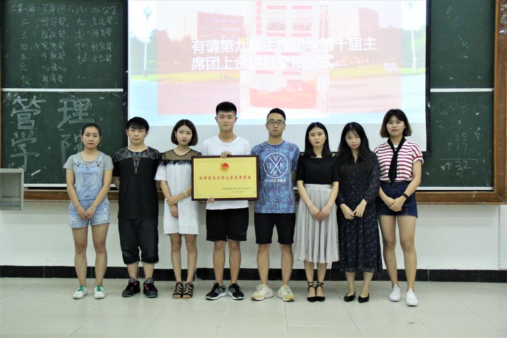 图18 第九届分团委、学生会主席团与新任第十届分团委、学生会主席团进行交接仪式。