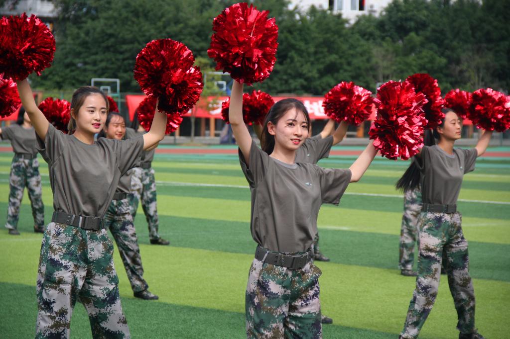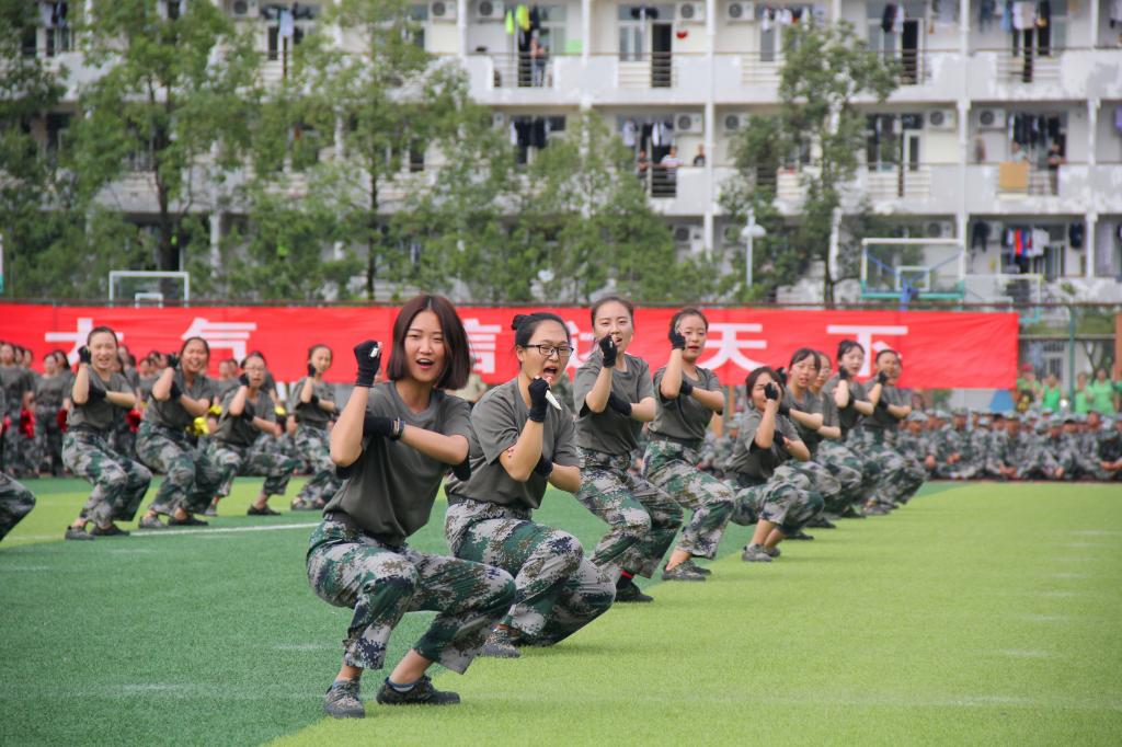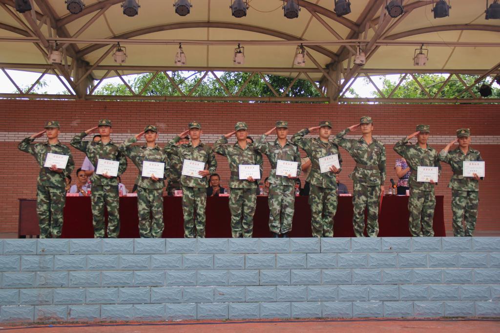 下午14点,总指挥徐战集合队伍完毕,同学们以方队为单位,整齐划一、精神饱满肃立在足球场上。大会在迎军旗、奏国歌中正式开始。首先,军训总指挥徐战检阅军训队伍,确认军训队伍准备完毕。紧接着,在教官的指挥下,分列式队列开始表演。男子抱枪方队和女子徒步方队为首的七个队伍喊着响亮的口号、迈着矫健的步伐经过主席台,他们气势昂扬、举手投足间虎虎生风,向领导嘉宾展示了训练后的骄人成绩。随后,女子擒敌方队、女子防身术、红旗棍术方队心理健康操方队和教官表演依次上场,他们满怀热情、精神抖擞的精彩表演赢得在场领导和老师们的一致好评,也展示了我校新生良好的形象和精神风貌。会上,领导嘉宾给优秀集体和优秀个人颁发了奖状。大会最后,于世祥校长发表讲话,预祝新生在未来的学习生活中能发扬军训中“不怕苦、不怕累”的军人精神,将未来的大学生活点缀得更缤纷多彩。