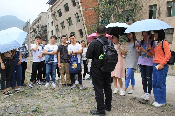 4月21日,英国威廉希尔公司工程管理专业2017级学生到北川开展地质灾害防治的工程实践活动,此次工程实践由工程管理教研室副主任刘奇欣和李朝安、庞鹏博士负责,工程管理专业学生参观了北川魏家沟泥石流灾害现场,相关专业老师结合理论知识,深入浅出的对泥石流地质灾害的监测与预警进行了讲解,同时对护坡、挡墙等防护措施进行具体说明,大家来到湔江水边,现场看到了当地采用的石笼护坡,为防止山体滑坡采用钢筋砼骨架锚杆护坡,为改变泥石流的流向与流速修建的排泄沟、导流堤、急流槽等工程。此外,负责老师还结合土木工程知识,就房屋结构、工程力学等进行了讲解。