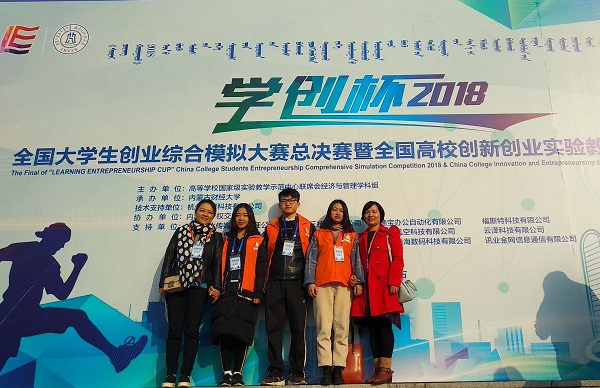 10月13至14日,由教育部高等学校国家级实验教学示范中心联席会主办的“学创杯”2018全国大学生创业综合模拟大赛总决赛在内蒙古财经大学举办,来自武汉大学、中国石油大学、安徽大学、广西大学、西安科技大学等在内的100多所高校、100余支队伍、300余名学生参与了此次比赛。我校英国威廉希尔公司学生雷勋、谢欣芮和刘伊葭组成的团队在高燕妮老师和王华老师的指导下参加此次比赛。