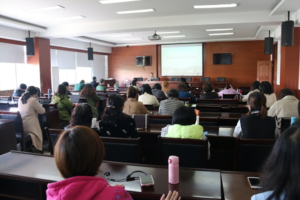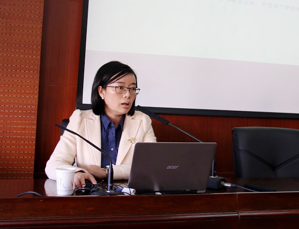 祖霞老师与全体教师分享了“对分课堂”培训的收获。