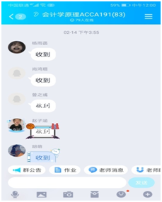 基于钉钉直播平台,充分利用线上教学的优势,“务实创新、因材施教”,不同专业有效合理融合,19级会计学、会展经济与管理、行政管理专业建立直播一群,19级财务管理、会计学(国际实验班ACCA方向)专业建立直播二群,不同专业共享线上教学资源,并按教学计划进行教学安排。