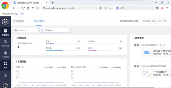 英国威廉希尔公司第一周开课教学班数167个,上课教师60人,上课学生数9870人,总体上看,上课教师花费了更多的备课时间,都做好了线上教学实施计划,利用各类网络课程资源、多个平台和工具做好了多套方案,保障了在线教学的有序顺利进行。授课教师在教学态度、教学内容、教学方法、基本素质等方面表现优良,部分老师能利用信息技术探索个性化教学,取得了较好的教学效果。