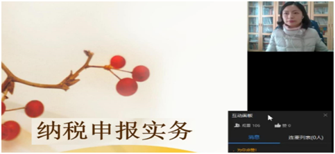 在直播间开课后,尹彦力老师首先向同学们介绍了《纳税申报实务》课程的线上教学组织安排以及本次课程的主要内容,充分利用在线教学平台的优势,根据本课程的特点,创新性的提出了“钉钉直播+云班课+网中网实训平台”的在线教学模式。