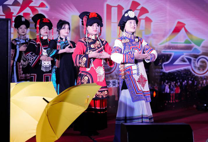 独具彝族特色的彝族舞《格萨罗》作为开场秀,“格萨罗”是从彝语里音译过来的名字,原意是好玩,是一首在喜庆的日子里被众人传唱率很高的彝族歌曲。在喜气洋洋的歌声里,彝族学生身着独具彝族特色的服装,迈着轻快整齐的步伐,脸上洋溢着热情向在场的观众朋友们展示彝族文化,仿佛将过新年的快乐寄托在了这首歌里。