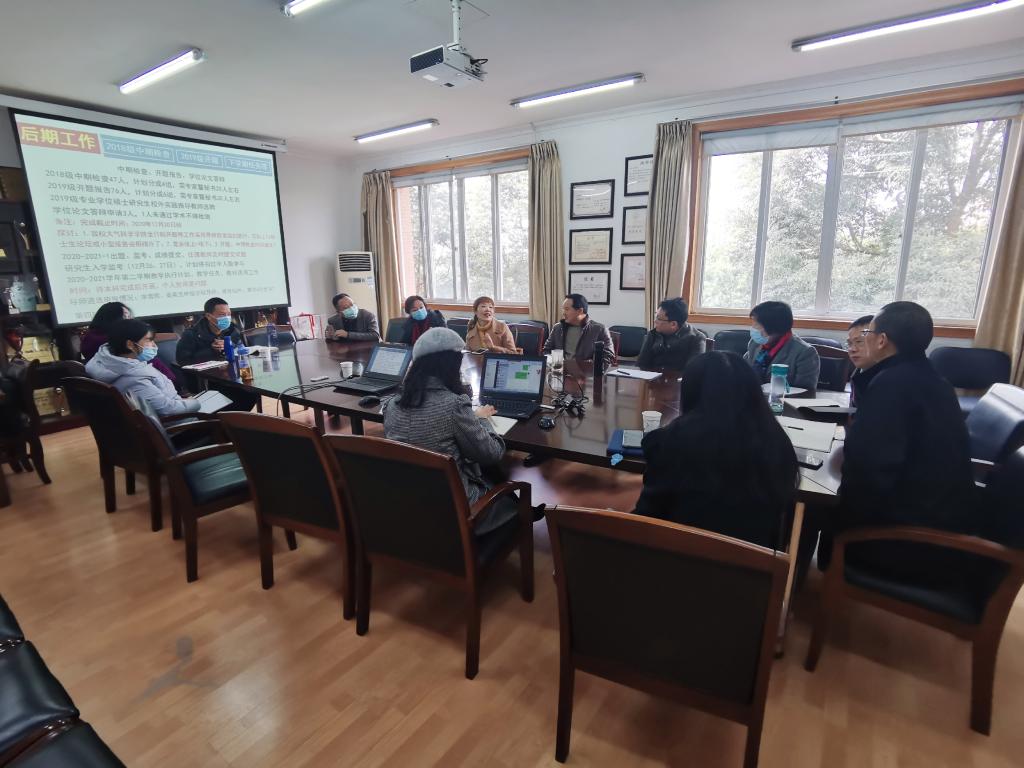 首先,李贵卿就本学期教学任务、研究生学术讲座、研究生教改、专业实践、中期考核、硕士点申报等已完成工作进行了通报,并就下半学期研究生工作进行了安排,重点强调了出题考试、中期检查、开题报告以及非全日制研究生进行线上教学等工作。