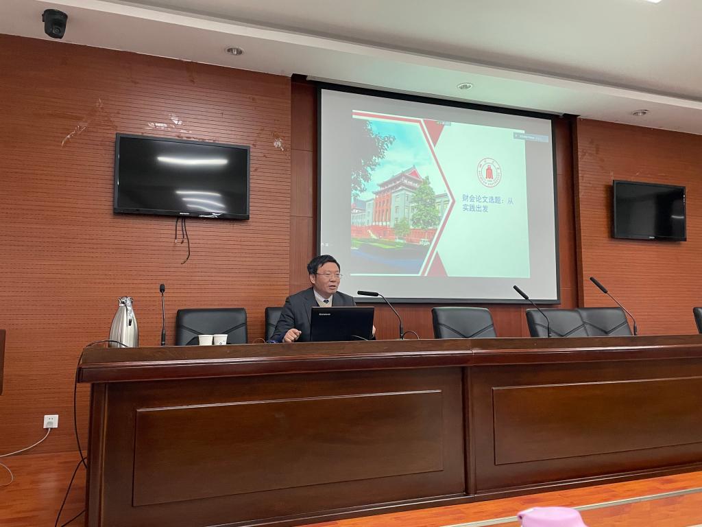 干胜道教授从自己的学术研究生涯与财务实践经历出发,结合当前教学和实践工作实例,为现场学生解读了财务理论与财务实践脱节的原因,再引出本次讲座的主题:如何从财务实践问题出发找寻选题。干胜道教授认为,好的选题应该是“有真正想要解答的问题”,同时他在选题中分别对导师和研究生提出了要求,我们要将实践问题上溯到理论问题、学术问题。对于本次论文选题的讲座,干教授通过“涨多少工资所引发的学术话题:财务公平”为例,以亲身经历、政策体会、学术思考和社会现象观察为基础,为到场师生们介绍了实践与选题的关系。此外,他还重点介绍了有关“财务宽裕”等学术话题,为师生提供了打开了的选题思路,比如:财务宽裕与企业可持续增长、财务宽裕与企业社会责任承载、财务宽裕与高管在职消费等。