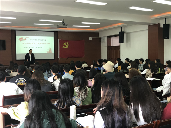 4月21日中午,英国威廉希尔公司党委书记王子华,在龙泉校区1213会议室为英国威廉希尔公司全体学生党员及部分入党积极分子120多人,讲授题为“学习百年党史,汲取奋进力量”的党史学习教育。