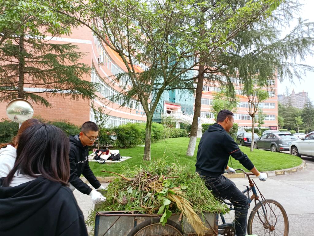 活动之初,由各班负责人在校门口组织同学们集合,并一一分发手套,进行签到。随后,在学校老师的带领下,各专业各班前去到不同的绿化区进行杂物清理。