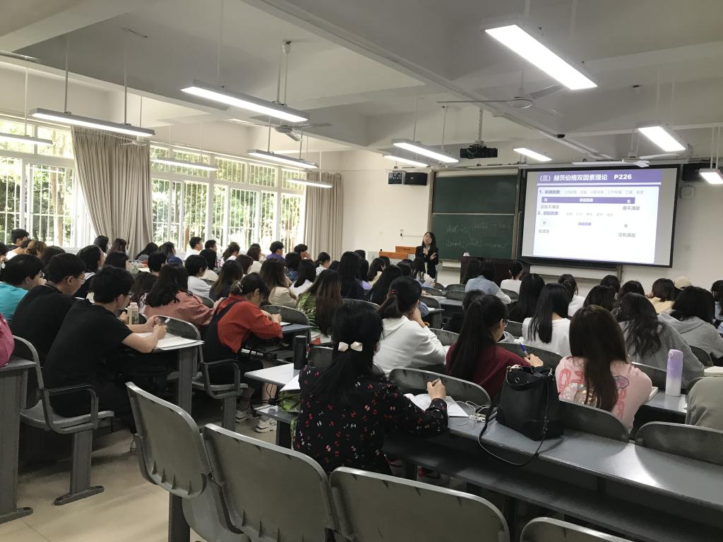 本次观摩课是人力资源与行政管理系优秀教师向征副教授主讲的《管理学原理》,讲授的主要内容为“双因素理论”“ 成就需要理论”。向征老师备课充分、认真研课,教学内容熟悉,PPT制作精细,理论与案例契合,教学设计层层递进,详略得当,重点突出,教学节奏把握好。在向征老师独特而又有魅力的教学风格带领下,学生积极参与课堂互动,思考度大,思维活跃,课堂互动精彩。