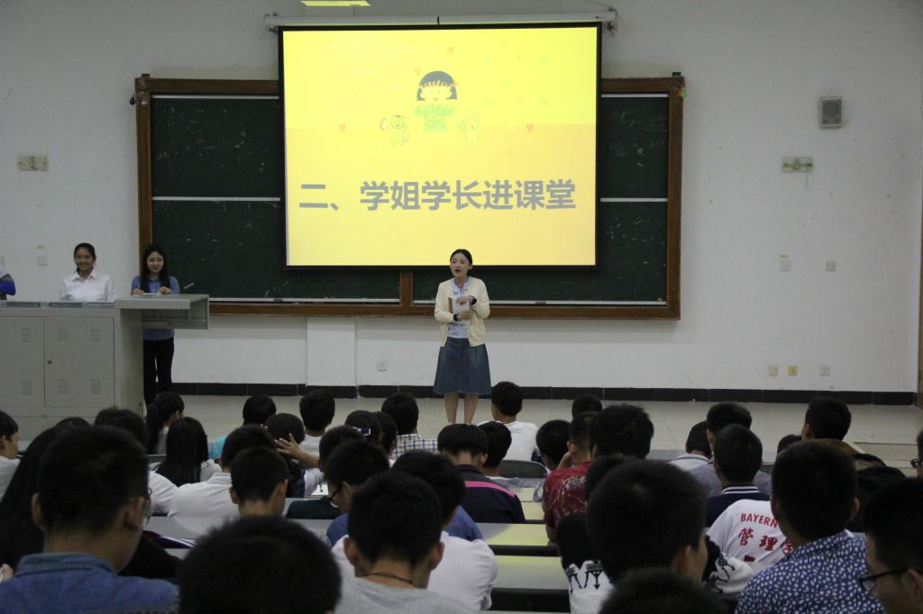 此次活动由三个环节组成。首先是认识环节,通过同学们之间的相互介绍,让各个专业的同学都相互认识、了解。接着是学姐学长进课堂。来自管院各个专业的优秀学姐学长们与同学们分享自己的学习经验、阅历等,同时也耐心的回答学妹学弟们的问题。这一环节让同学们对大学学习有了更深一层的理解,也让他们对未来有了好的规划。在最后的游戏环节,同学们踊跃参与,让现场的气氛逐渐热起来。通过这样简单的游戏环节就让同学们彼此有了更深刻的印象,拉近了他们之间的友谊。