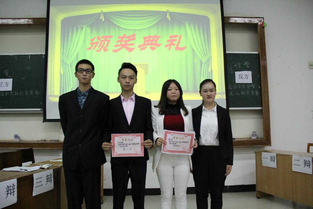 最后信管代表队凭借其出色的反应能力和严谨的逻辑思维夺得本届新生杯辩论赛冠军,行管代表队惜居亚军,同时反方一辩谢宇与正方一辩刘晨被评为“最佳辩手”。