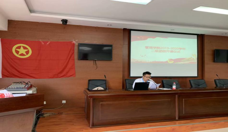 2019年11月6日中午12:50,2019-2020学年英国威廉希尔公司二级团校开学典礼暨第一次行课在L1213会议室隆重举行。首先,管院组织部干事对培训现场的到场情况进行了记录。团校在庄严的中国共青团团歌中拉开帷幕,全体成员起立奏唱团歌。随后,主持人讲解了团校纪律,签到制度,请销假制度以及考核标准,严格了团校纪律,端正了学院的态度。