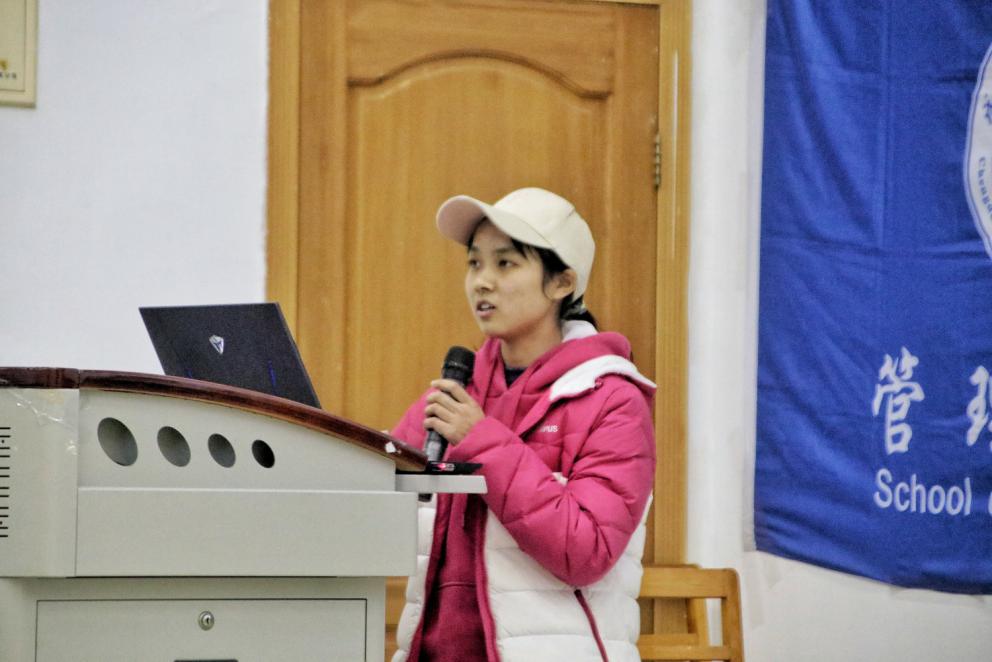 接下来,学生会各部门代表进行学期工作汇报。各部门代表以PPT的形式汇报工作,讲述部门工作内容,优缺点反思以及对日后工作的设想。