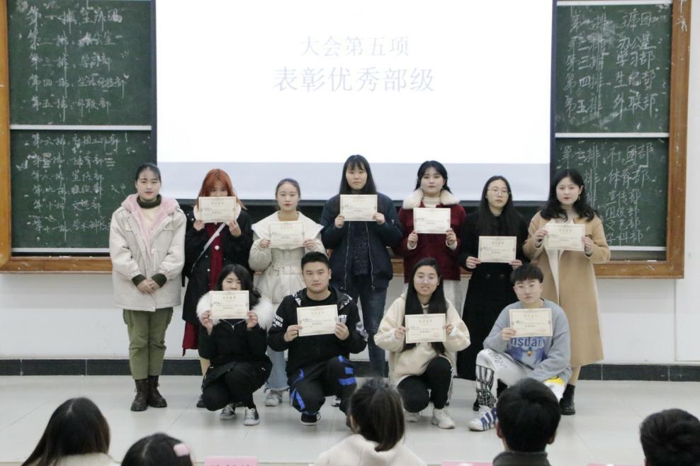 最后,对本学期团委、学生会优秀干事、优秀部长、优秀部门进行表彰。至此,第十二届团委、学生会期末例会圆满结束。