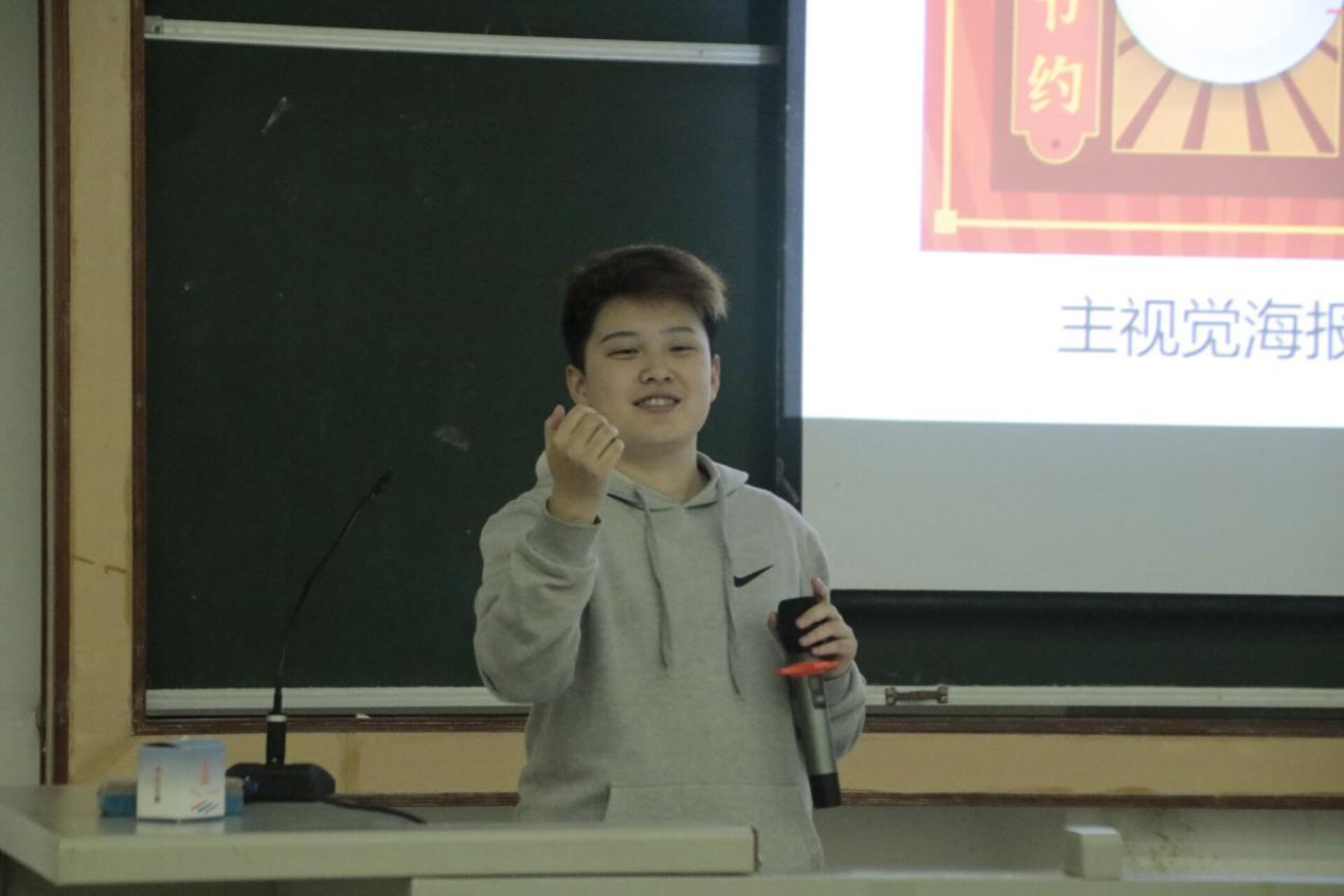 本次培训分为两场:海报制作培训和物资申请培训。第一场由蒋伊然同学带来海报的制作技巧培训。首先,她展示了两张精美海报,并提问海报应具备哪些要素,以提问的方式吸引在场同学的注意力,激发同学们的兴趣,为同学们留下了深刻印象。蒋伊然同学分别从海报构成元素、颜色构成及字体设置三个方面进行了讲解。最后,蒋伊然同学用PPT现场制作了一张旅游规划海报,为同学们海报制作提供了示范。