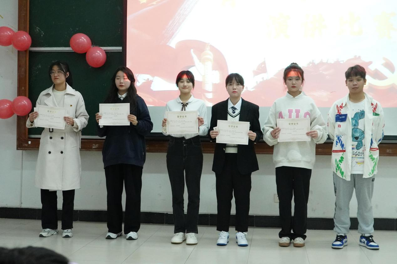 最后,团委学生会工作人员与评委合影留念。本次演讲比赛不仅给同学们搭建一个展现自我的平台,营造了浓厚的校园文化氛围,更是让同学们走进二十大,学习二十大,将二十大精神深植其心。相信正当奋发时的我们能脚踏实地,齐力笃行,高举新时代中国特色社会主义旗帜,永远跟党走,奋进新征程。