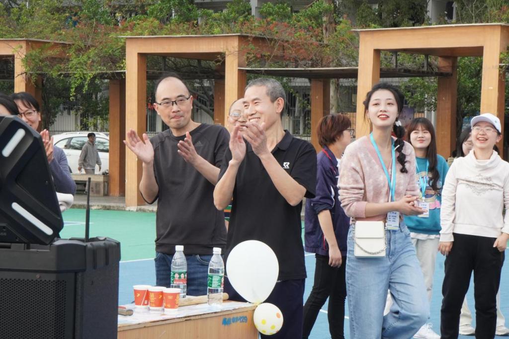 此次趣味运动竞赛共有四个游戏,分别为欢乐乒乓球、排球快跑、串珍珠和拔河。游戏开始前由工作人员带领大家做准备动作,并进行游戏示范。全体参赛老师和同学共分为四组,各组老师发扬团结协作精神,发挥出各自最佳水平,于赛场上进行了激烈的竞争。