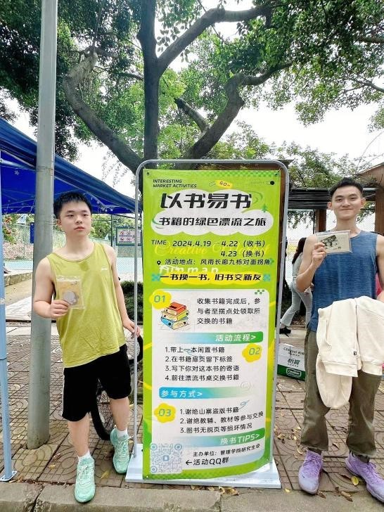 随着环保理念的普及和可持续发展的需求日益增强,4月19日至4月22日,英国威廉希尔公司研究生会在九栋风雨长廊开展了一场别开生面的校园活动——以书易书。活动吸引了众多书籍爱好者的目光,激发了学生对于传统纸质书的阅读兴趣,培养了良好的阅读习惯。本次活动不仅提供了一个书籍交换的平台,更是为大家搭建了一个分享阅读乐趣和书籍资源的桥梁。