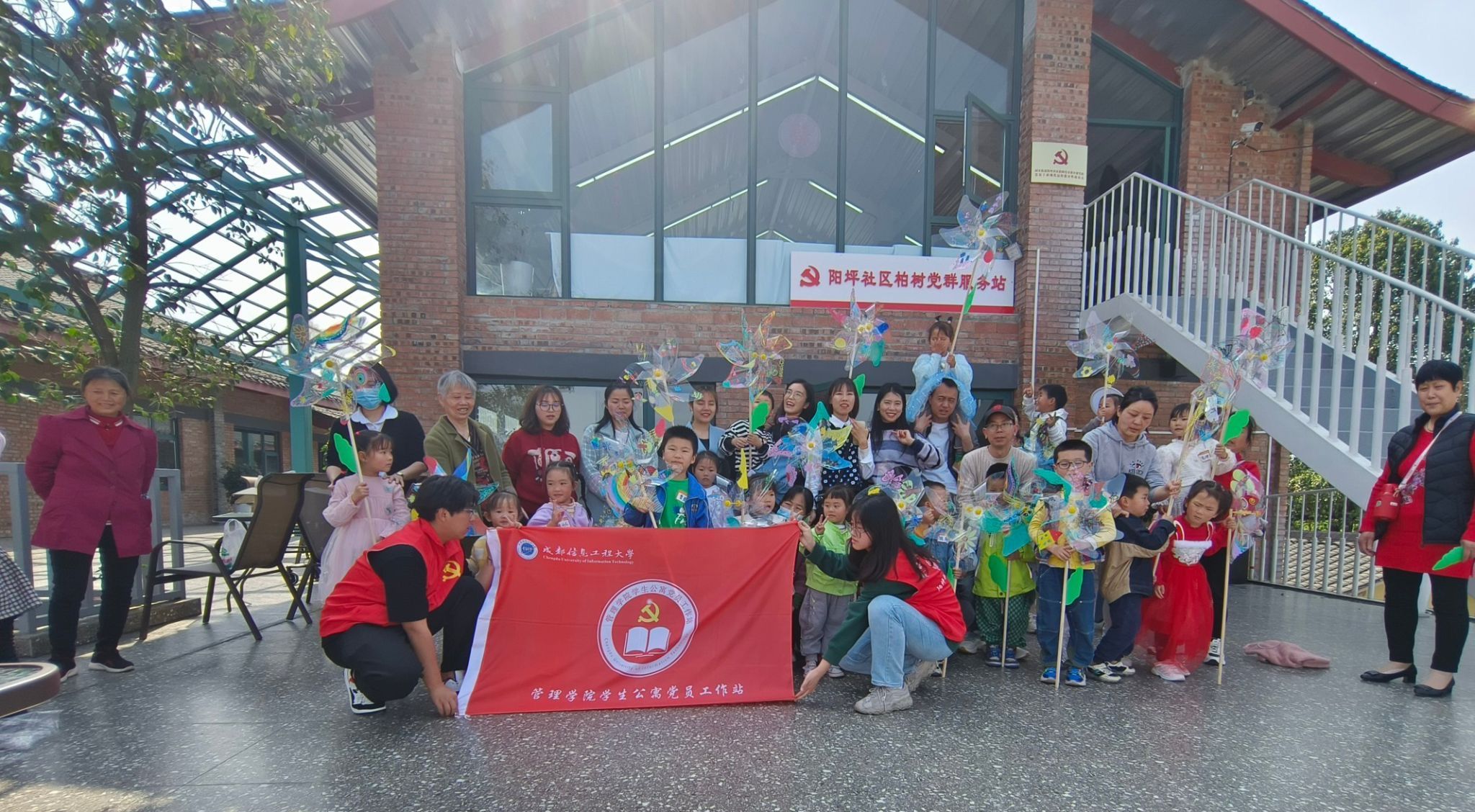 工作站成员跟随志愿组织来到阳坪社区柏村党群服务站,陪伴社区的孩子们玩耍,给他们读绘本《春天的魔法》,带领小读者们开启一段春天的旅程,在认识自然中激发无限的想象力;教孩子们做手工风车,与爸爸妈妈一起感受动手实践的快乐。