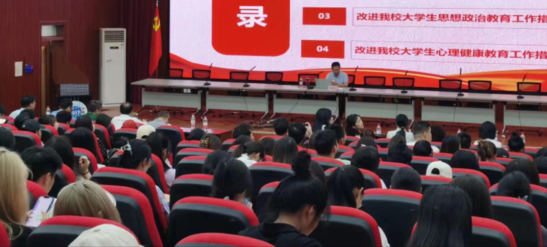 接着马洪江围绕“大学生思想政治教育与心理健康”,全面分析了当前大学生思想政治教育与心理健康现状及存在的问题,并提出改进我校大学生思想政治教育工作措施和心理健康教育工作措施。马洪江指出,要引导学生树立坚定的理想信念,帮助学生拥有强健的体魄,健康的身心和健全的人格。大学生思想政治教育与心理健康深度融合,加强心理教育,不仅是思想政治教育教育体系中的重要环节,更是提高思想政治教育的实效性的基础和保障。