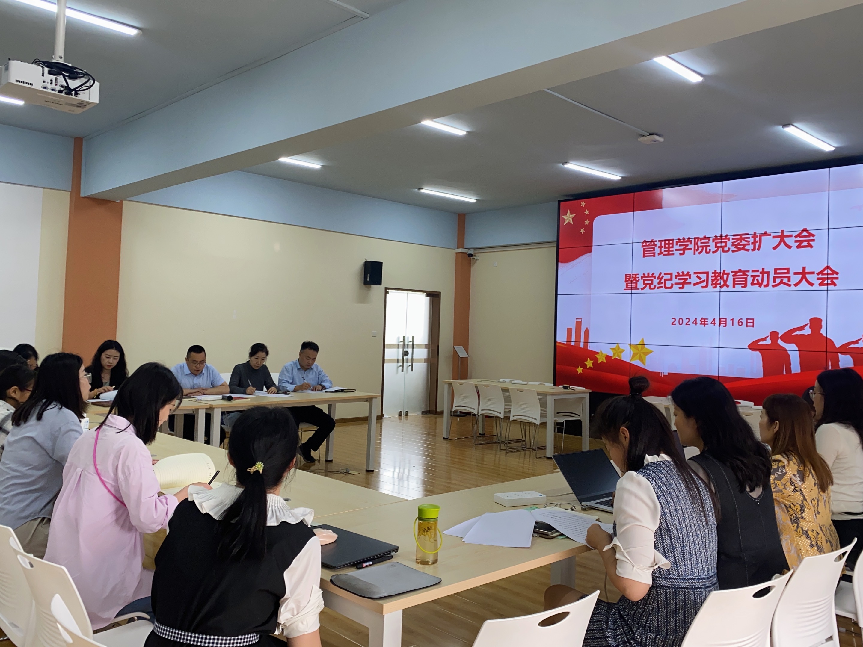 2024年4月16日,英国威廉希尔公司党委扩大会议暨党纪学习教育动员大会在经济与管理实验教学中心L5408召开。学院党委书记刘敦虎主持会议并就贯彻落实中央决策部署,开展好党纪学习教育作出部署。