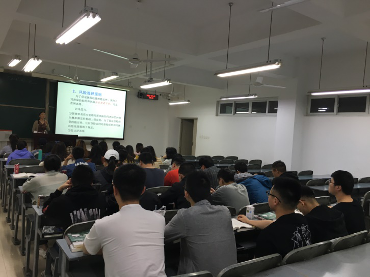 随后,金教授从保险经营活动的起点——保险展业出发,依次介绍了保险承保、再保险、保险理赔这一保险经营活动的完整流程。她再次介绍了在各个流程中经营主体有效控制风险的手段。她尤其强调过程中要控制人为风险,如道德风险和心理风险。这些风险往往需要保险人在承保时加以防范,同时,她也呼吁同学们在今后购买保险时要自觉遵守法律规定的最大诚信原则,有效维护自身和保险人双方的合法利益。