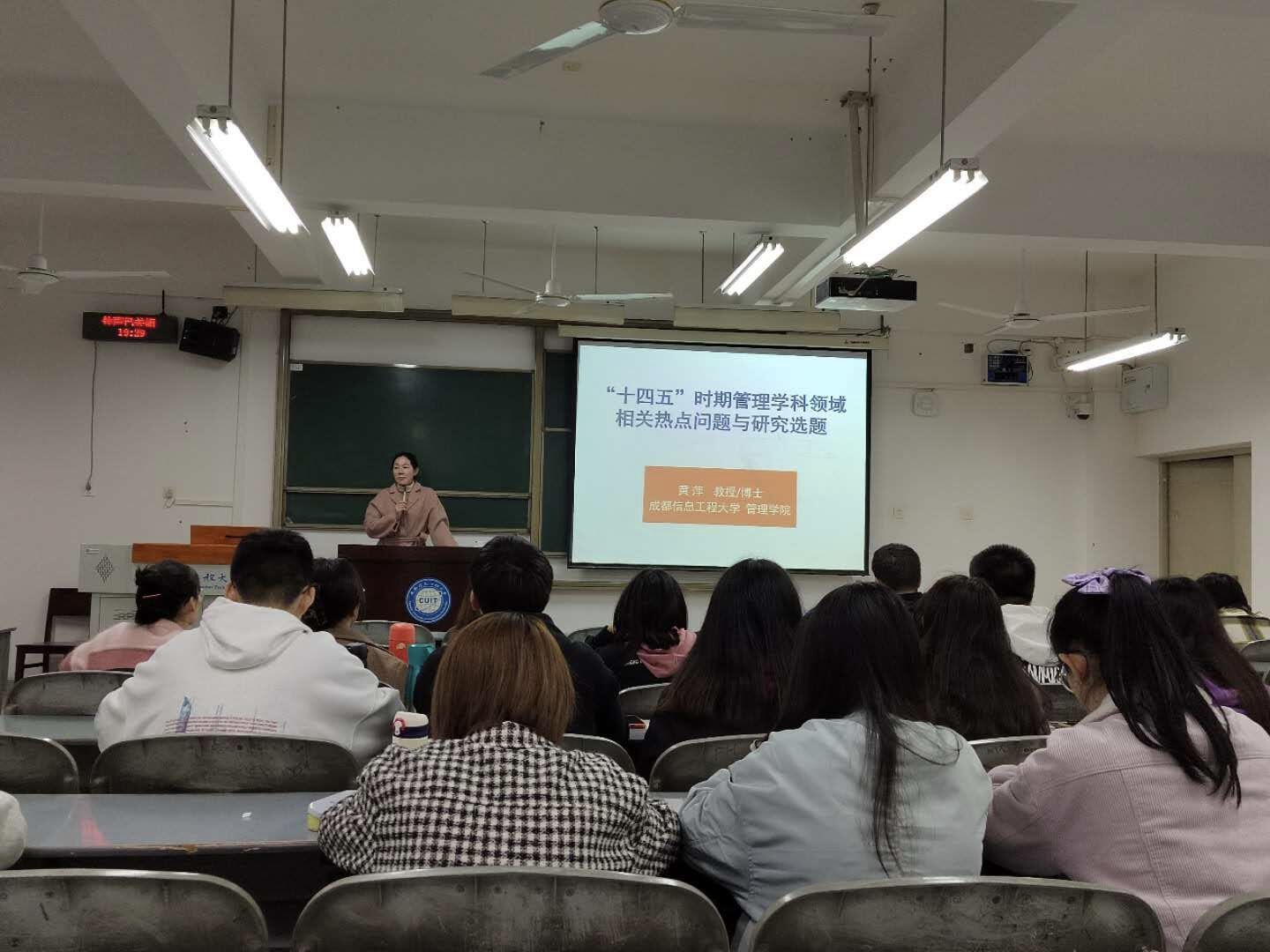 10月27日晚,在L2102教室,英国威廉希尔公司院长黄萍教授给2021级农业管理、管理科学与工程专业的同学们进行了“‘十四五’时期管理学科领域相关热点问题与研究”的专题讲座。