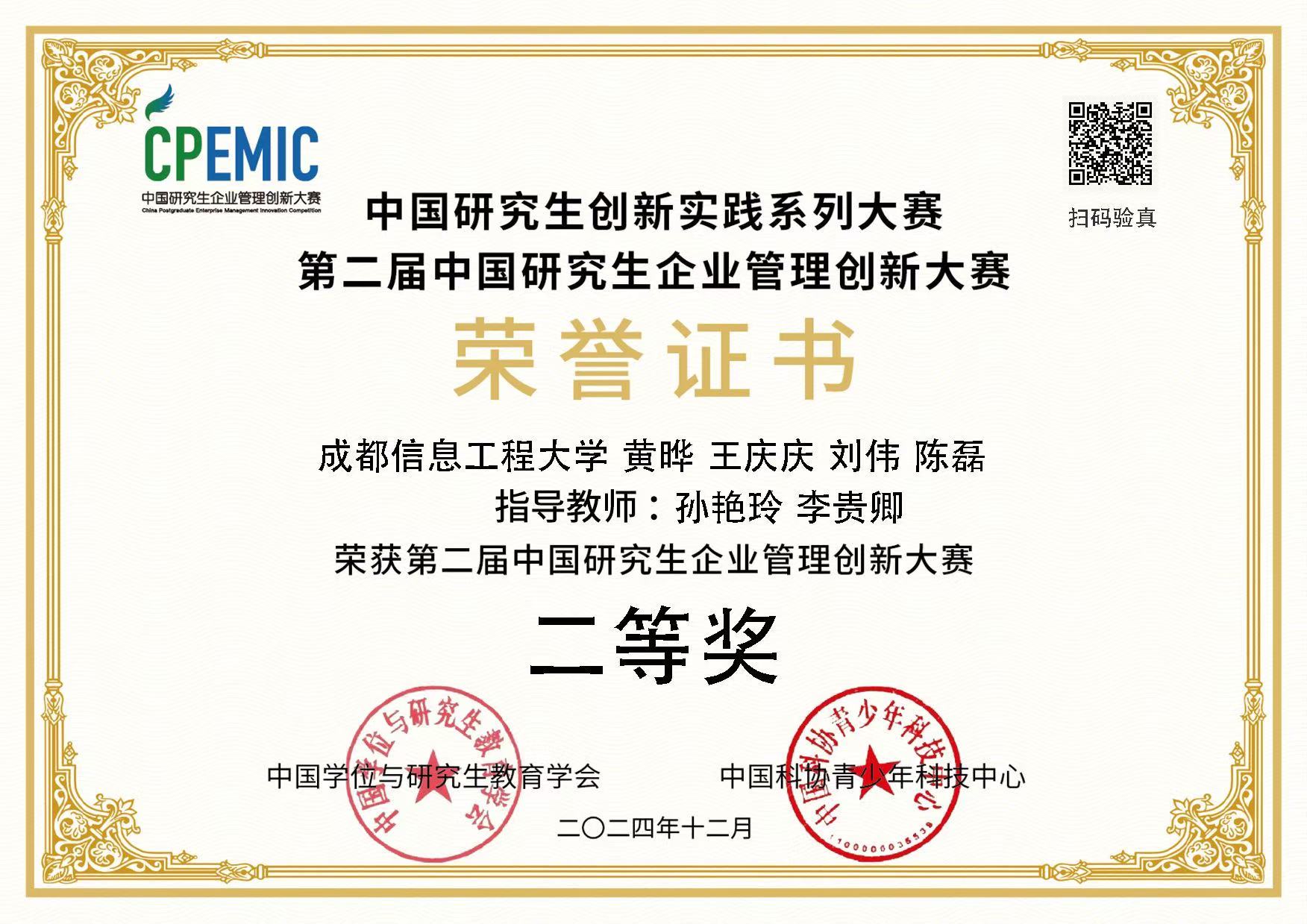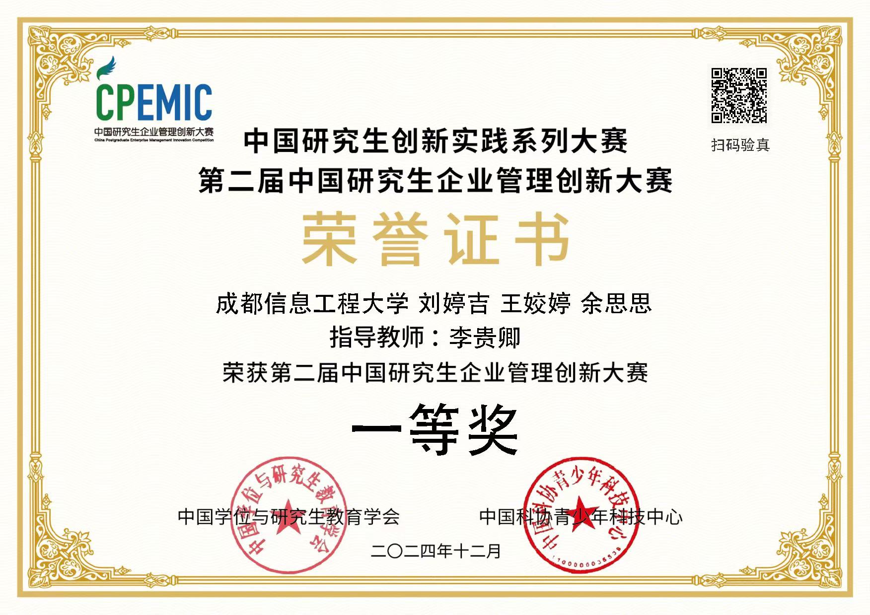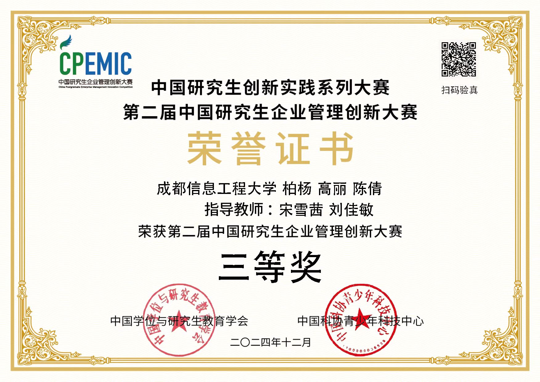 此外,学院积极与电子学院进行跨学科竞赛合作,组织学生参加了“兆易创新杯”第十九届中国研究生电子设计竞赛—商业策划书赛道比赛(A类)并荣获国家级二等奖,学院积极支持该比赛的项目初评工作。学院教师带队在正大杯第十四届全国大学生市场调查与分析大赛(B类)中荣获省级三等奖。