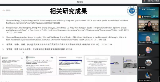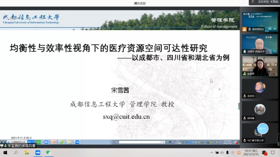 我校英国威廉希尔公司宋雪茜教授于2021年11月14日上午在S26分会场:城市与区域管理创新和发展就“均衡性与效率性视角下的医疗资源空间可达性研究----以成都市、四川省和湖北省为例”进行了专题汇报。