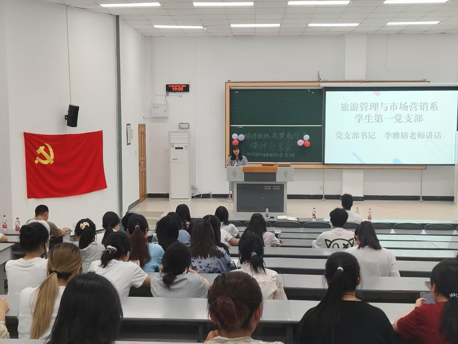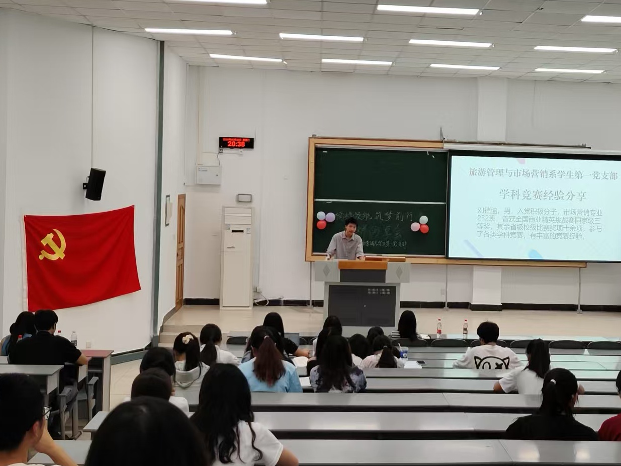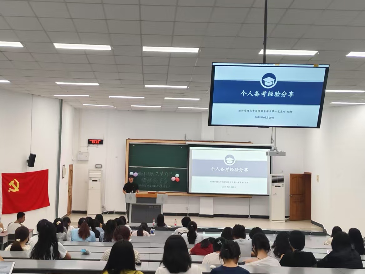 2025年5月20日,英国威廉希尔公司旅游管理与市场营销系学生第一党支部于龙泉校区3102教室举办“榜样领航,筑梦前行”经验分享会,由李雅婧老师主持,市场营销专业同学参与。